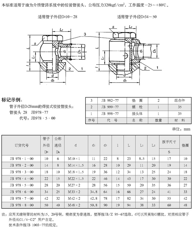 焊接式铰接管接头(根据JB 978-77)