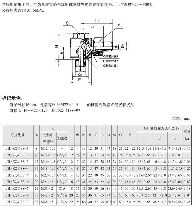 锥密封焊接式铰接管接头(根据JB/ZQ 4188-97)