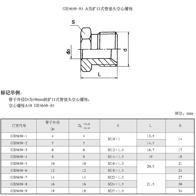 空心螺栓(根据GB 5650-85)