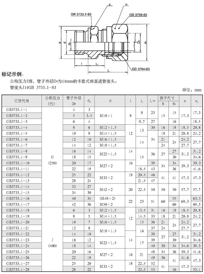 卡套式端直通管接头(根据GB 3733.1-83)