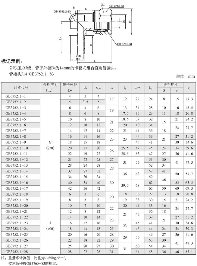 卡套式组合直角管接头(根据GB 3752.1-83)