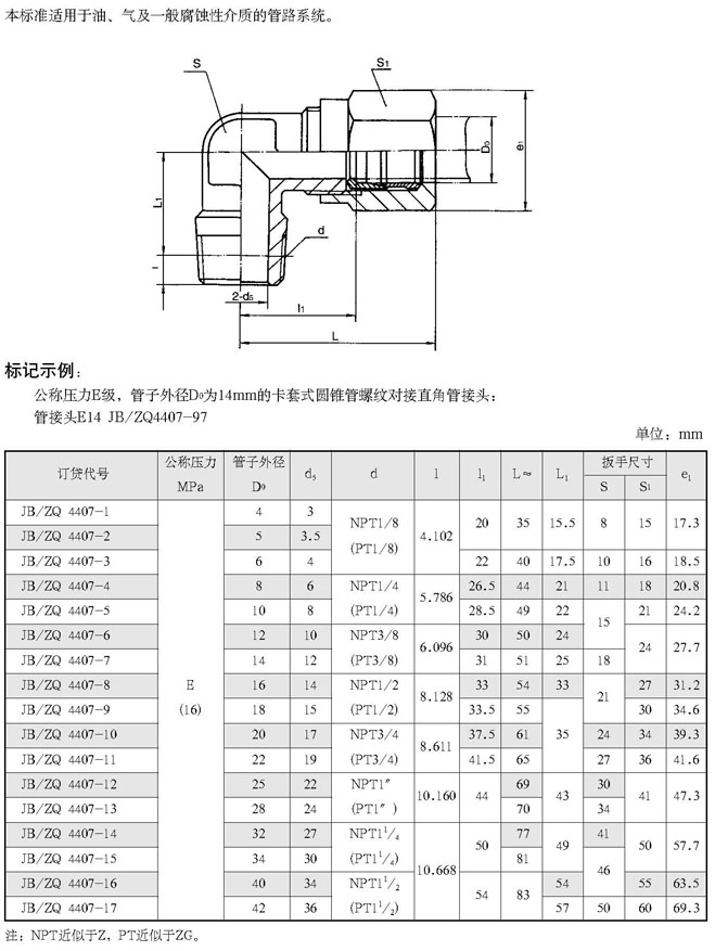 卡套式圆锥管螺纹对接直角管接头(根据JB/ZQ4407-97 代替JB/ZQ4407-86)