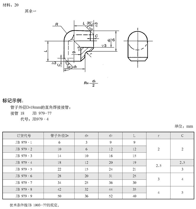 直角焊接接管(根据JB 979-77)