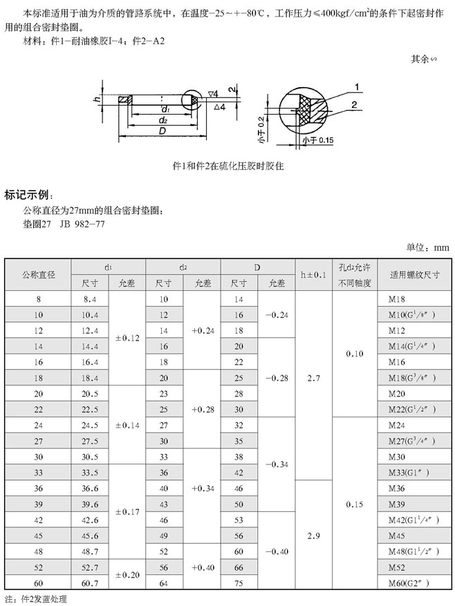 组合密封垫圈(根据JB 982-77)