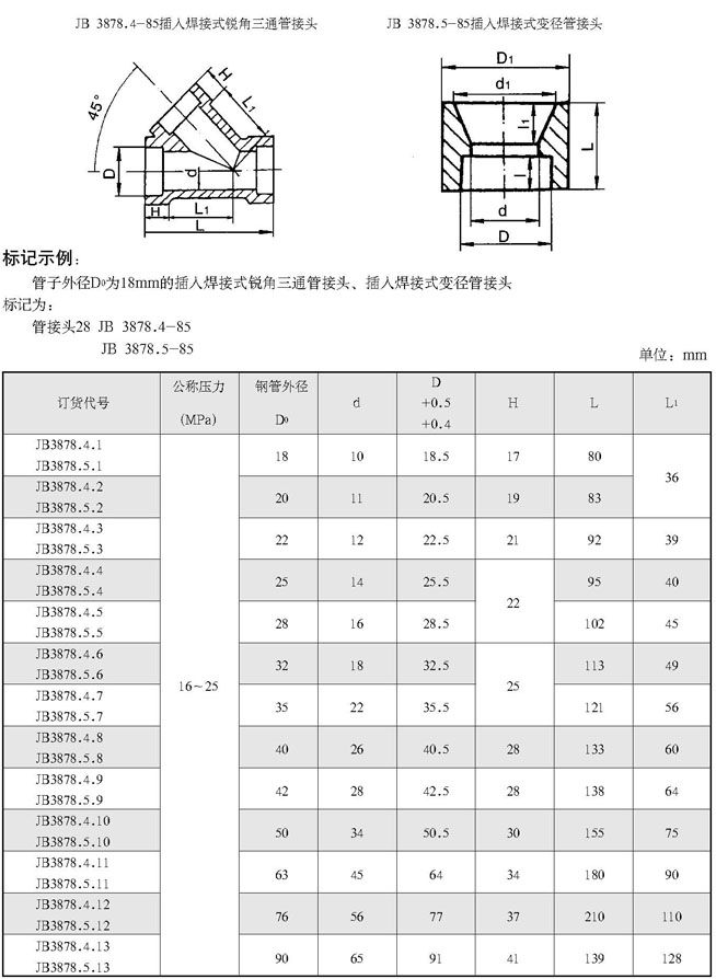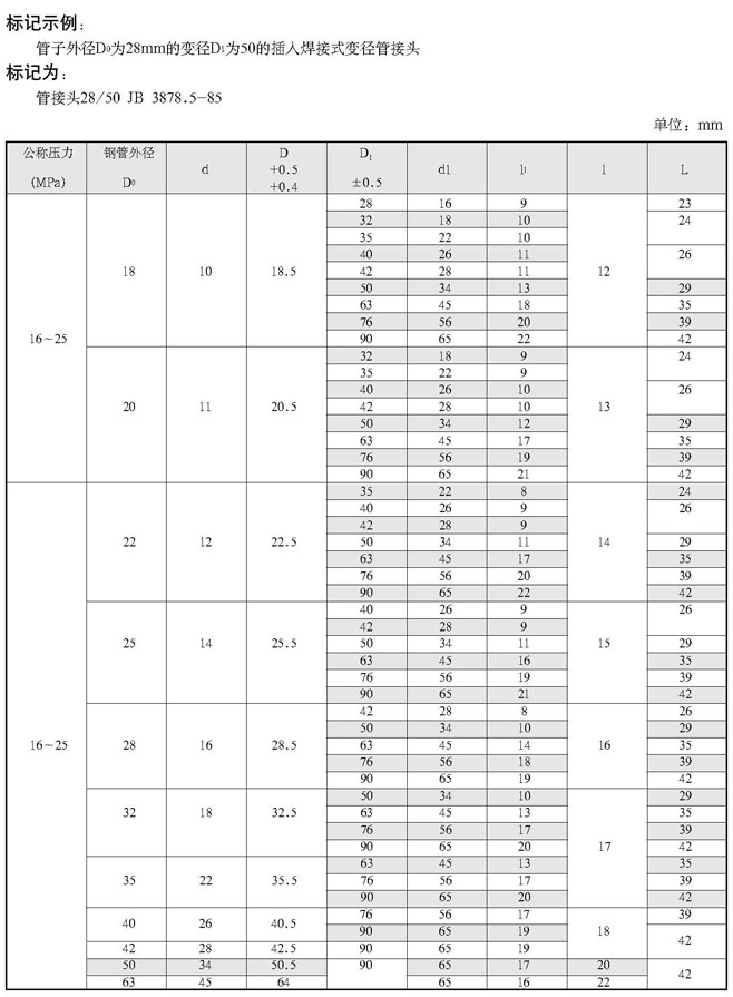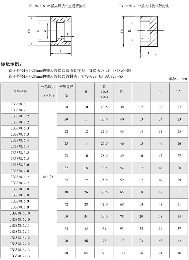 插入焊接式接头(根据JB 3878(1.2.3)-85)