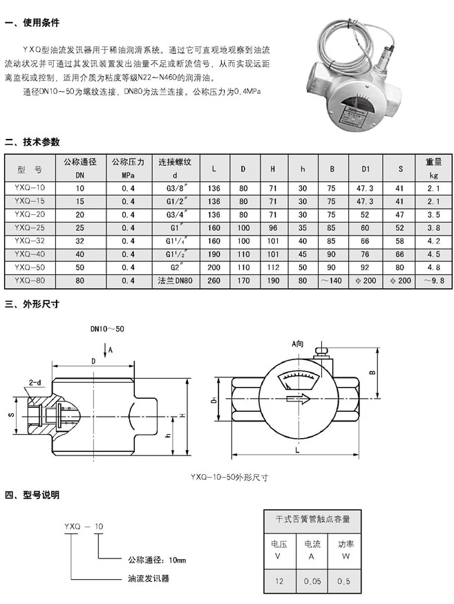 YXQ型油流发讯器(0.4MPa)JB/ZQ4596-97